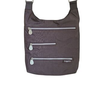 baggallini crossbody travel purse lightweight 3 zipper front dark grey bag