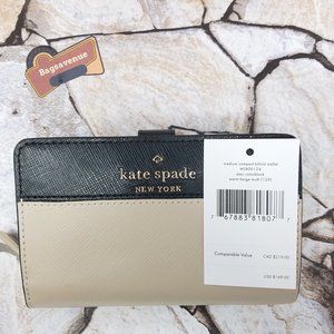 (◕‿◕✿) New Staci Colorblock Medium Compact Bifold Wallet Warm Beige Kate Spade #bagsavenue FAST SHIPPING