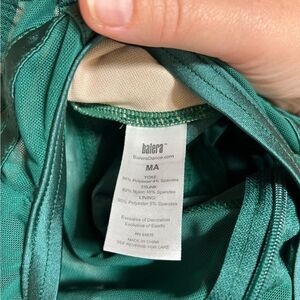 Leotard is made of lustre spandex with power mesh insets at the neckline and waist