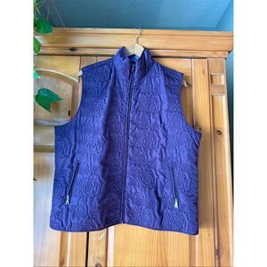 bamboo Traders Purple Quilted Floral Vest Size XL Full Zip Pockets