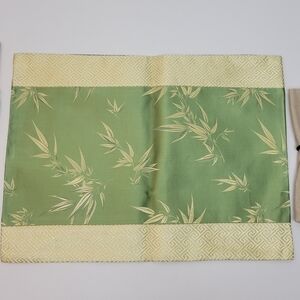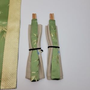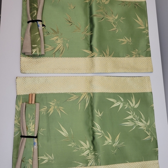 Set of 2 placemats with matching chopstick, chopstick holder, napkin and tie.