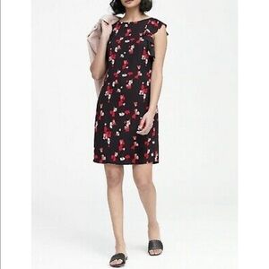π Ίbanana Republic Black Floral Flutter Sleeve Shift Dress Size 2
