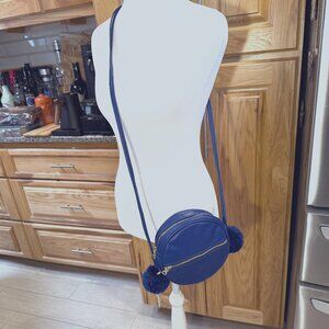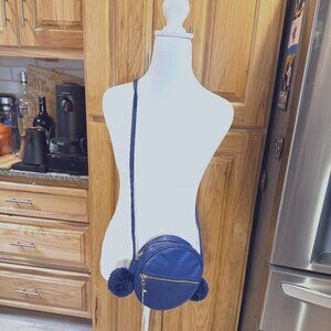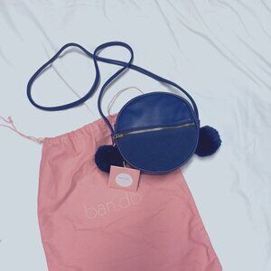 ban.do crossbody bag, round purse with pom poms, blue shoulder bag, festival travel bag, NWT giftable #bando #Crossbody #Blue #RoundBag #NWT