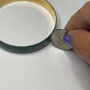 bangle bracelet costume signed jewelry hunter green enameled bracelet set in gold tone setting, 2.5” in diameter and right at 1/2” in width.