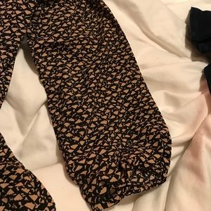 Black and cream color Blouse. Gently used. V-neck and elastic gather at waist and flows below elastic.