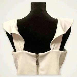 bar III Corset style Ruffled V-Neck Structured White Zipper Back Feminine Top