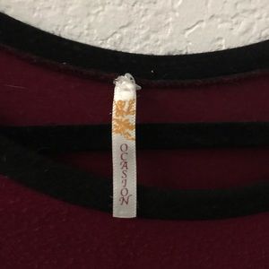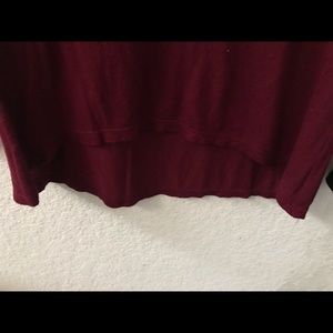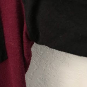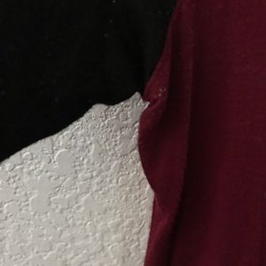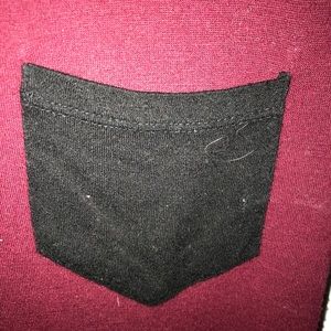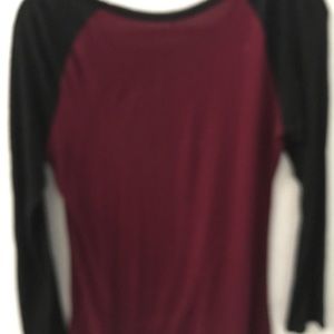 Ocasion small wine and black baseball t looking shirt with black pocket on front left breast very soft high/low cut done light pulling