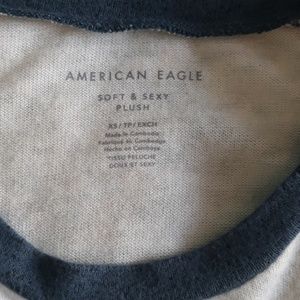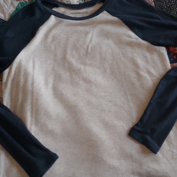 super soft baseball long sleeve tee. really cute. it's from american eagle. runs kind of bigger. never been worn just doesn't have tags.