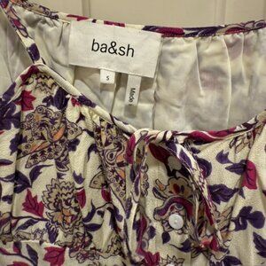 ba&sh paisley floral print camisole tie top with purple and pink flowers on a cream white background. The straps are ties and it has button front detailing. Never worn, like new condition.