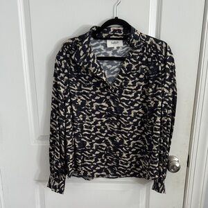 Stylish ba&sh top with a unique black and cream pattern. Long sleeves and a relaxed fit. Perfect for casual or dressy occasions.