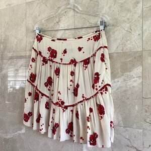 ba&sh Bia Lady Mini Skirt - 1 / US 6 - Cream, Red Floral Tiered, Holiday Cottage