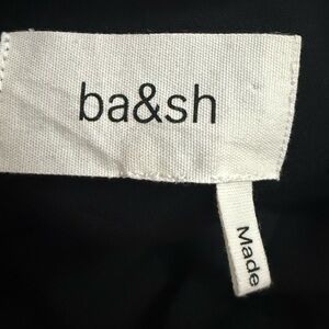 Chic black mini dress by ba&sh. Features elegant white detailing. Perfect for stylish outings. In like new condition