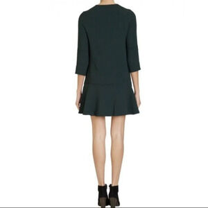 Black textured fabric short dress with drop waist and ruffle hem