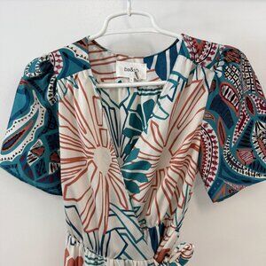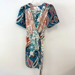ba&sh Floral Paisley Jara Mixed Print Blue & White Short Sleeve Mini Wrap Dress