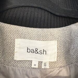 Stylish gray jacket by ba&sh. Features a wide collar and button details. Perfect for layering.