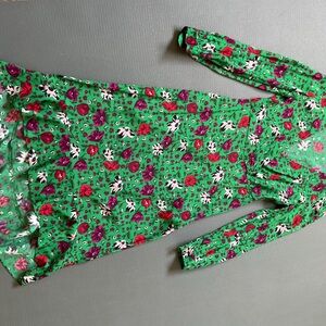 Vibrant green dress with floral pattern. High low hem. Perfect for any occasion.