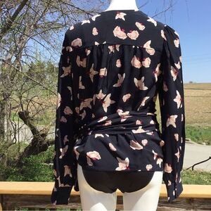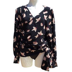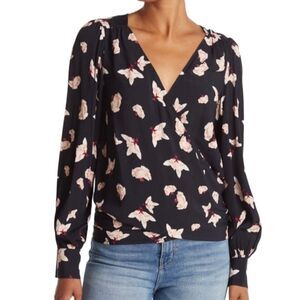 ba&sh Koxie Floral Print Long Sleeve V-Neck Wrap Top Black New Size Large (8)