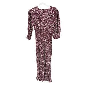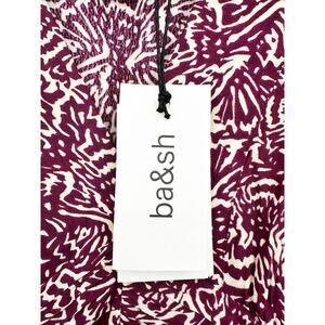 ba&sh LOA Burgundy Printed V-Neck 3/4 Sleeve Viscose Midi Dress Size Small NWT