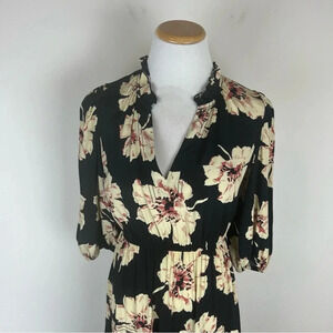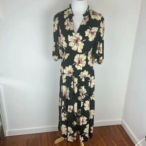 ba&sh Lady Midi Dress Kory Floral Size XS Black Cream