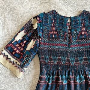 Keywords: boho, geometric print, peasant style, southwestern vibe, artisanal, festival wear, earth tones, folk