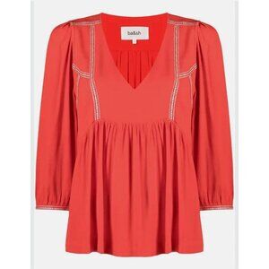 ba&sh Paris Amber Blouse Women’s Size Small Coral Embroidered V-Neck 3/4 Sleeve