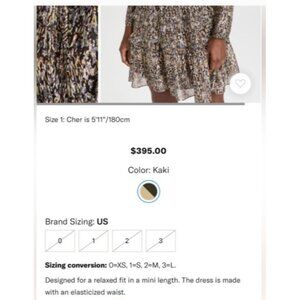 ba&sh dress, ba&sh Paris, mini ruffle dress, V-neck printed dress, tiered skirt dress, Kaki dress, long sleeve mini, French fashion, boho chic dress, designer dress medium