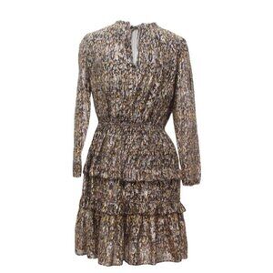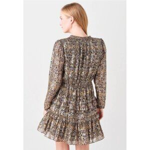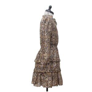 ba&sh Paris Mini Dress Size 2 US Medium Printed Long Sleeve Ruffle Tiered V-Neck Kaki
