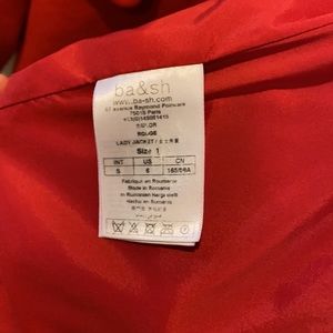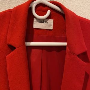 Stylish red blazer by ba&sh. Features a single button closure and two front pockets. Perfect for a chic look.