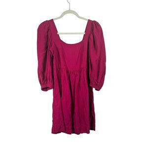 ba&sh Robe Palerme Pink Mini Dress Linen Blend Puff Sleeve Womens 0 US Size 2 XS