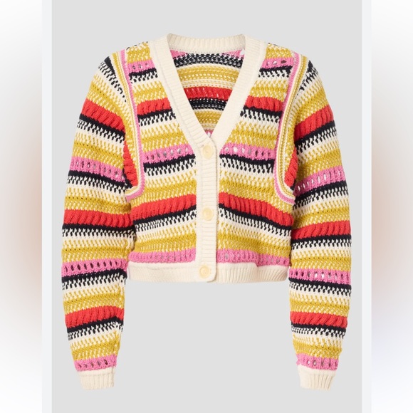Cute striped boxy crop cardigan. Heavyweight but breathable. Worn a few times, in good used condition, no flaws noted