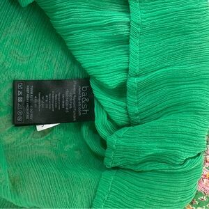 This casual sundress by ba&sh showcases a delightful pink and green pattern, perfect for a relaxed day out. The dress features a short flowy skirt and long bishop sleeves, adding a touch of elegance to its casual style. With a crew neck and airy fabric, it's an ideal choice for a comfortable yet stylish look.