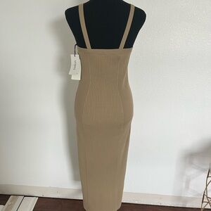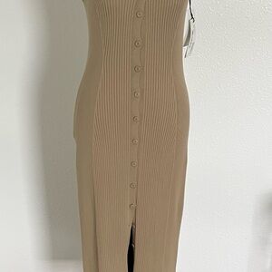 ba&sh Tan Asymmetrical Ribbed Sheath Dress