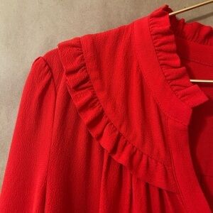 ba&sh Thalgo Ruffle Yoke Plunging V-Neck Popover Top in Grenadine Red Size M