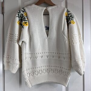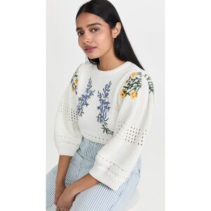 ba&sh Women's Miro Boxy Floral Embroidered Cotton Sweater Size 0