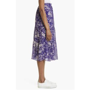 ba&sh Womens Uria Midi Skirt Small Violet Floral A-Line Tiered Lined Pur…