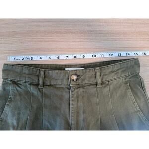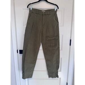 - Description: Cargo cut. High waist. Front and back darts. Belt loops. Zip and button closure at the front. Two Italian pockets at the front. Two flap pockets at the back. Large asymmetrical flap pocket on one leg. Tapered at the ankles. Fabric: 100% Cotton. Lining: 65% Polyester 35% Cotton. Machine wash cold.