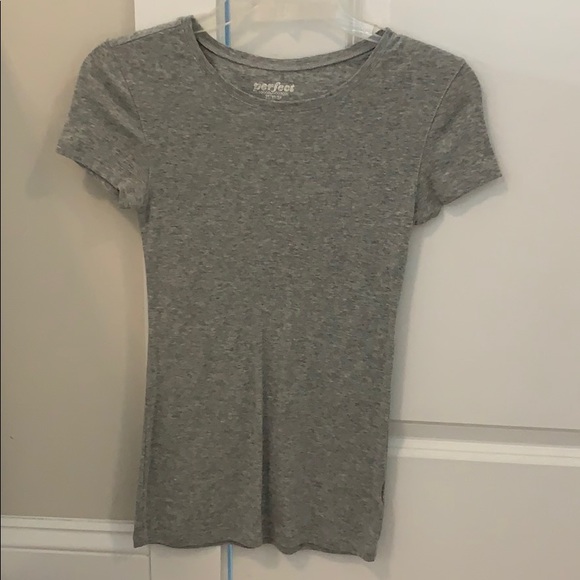 probably not worn much. fitted grey tshirt. super comfy. could work well under other clothing