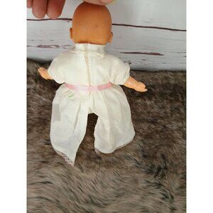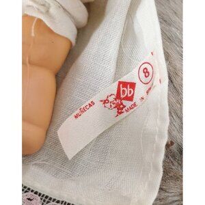 b.b. Made In Spain Vintage Newborn Baby Girl 6" Doll White Dress Pink Ribbon