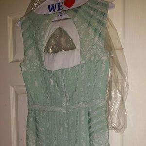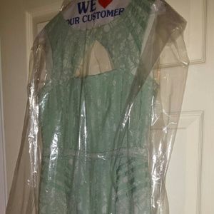 REPOSH: Mint green Umi lace sheath dress has contrasting lace and ribbon detail. Open back and small opening in front. Worn once for a few hours and dry cleaned. No stains, rips, tears or pulls. Amazing dress!!
