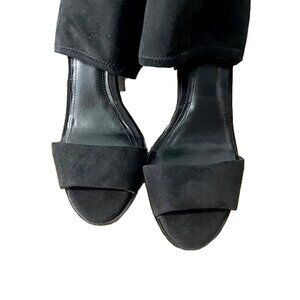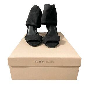 bcbgeneration | black faux suede open toe ankle bootie slingback block heels