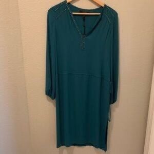 This dress is stunning and NWT. This dress has a slit on the side that makes this dress great for the office or an effortless look for dinner with a high heel and dripping earrings. The color is stunning. You won’t want to miss this dress!