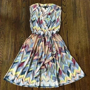 bcbgmaxazria Women’s M Geometric Sleeveless Deep V-Neck Flowy Dress - EUC!!
