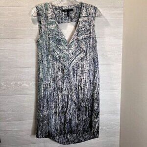 This elegant BCBGMAXAZRIA sleeveless top features a V-neck and ruffle front, perfect for adding a touch of sophistication to any outfit. Ideal for both casual and formal occasions, this top is a versatile addition to any wardrobe.