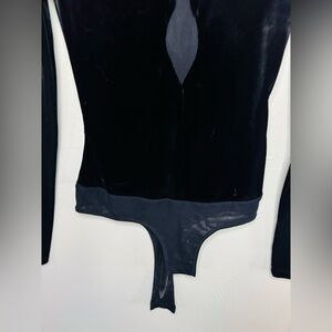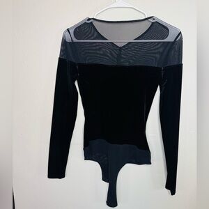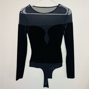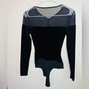 bcbgmaxazria velvet and mesh black bodysuit