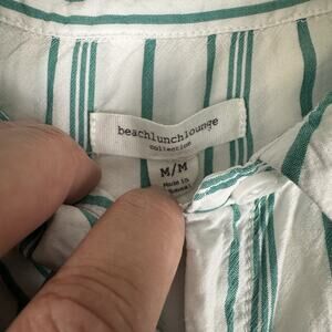 beach lunch lounge Button Up Cap Sleeve Top Womens Size M Green White Stripe