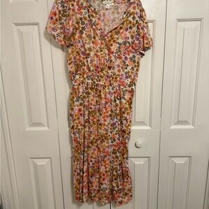 beachlunchlounge Floral Print Midi Dress - Pink and Orange