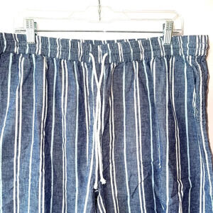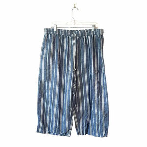 beachlunchlounge Margot Blue Striped High Rise Crop Linen Pants Xlarge Women’s