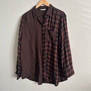 beachlunchlounge Mixed-scale gingham plaid patterns billowy long sleeve shirt brown and black