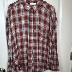 beachlunchlounge Plaid Shirt Woman L Red Elliot Button Up Long Sleeve
