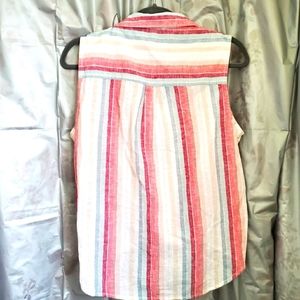 beachlunchlounge Sleeveless Knot at the Waist Striped Button Up Top 0085